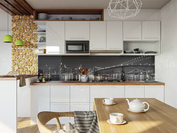 Глянцевая стеновая панель FM-043 с черно-белым изображением — стильный элемент в интерьере кухни. Фотопечать с панорамным видом ночного города завораживает с первого взгляда. Она выгодно подчеркнет кухонный гарнитур и придаст ему лоск.<br> Изделие поможет защитить стену от воздействия влаги, жира и прочих загрязнений. Поверхность размером 2800 х 610 мм имеет высокоглянцевое покрытие с «эффектом стекла», который достигается за счет нанесения слоя акрилового лака с дальнейшей шлифовкой и полировкой. Рисунок нанесен методом цифровой УФ-печати.<br> Материал изготовления — МДФ. Это значит, что изделие прослужит долгие годы и оно весьма устойчиво к внешним воздействиям. Если вам необходимо будет распилить панель по своему размеру, то материал не будет крошиться и разрушаться.<br> Обратите внимание, изделие поставляется в собранном виде, но требуется крепление на стену с помощью клея или саморезов. Стоимость сборки указана за навешивание панели к стене нашими специалистами. None Страна производства: Россия