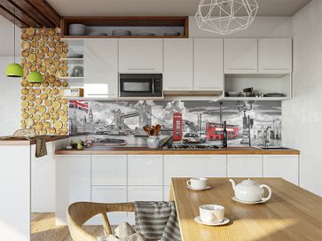 Стеновая панель SP-123 окажется настоящим подарком для тех, кто влюблен в Лондон. Она с поразительной точностью передает образ строгой и величественной столицы Великобритании с богатой многовековой историей. Черно-белое исполнение оригинально контрастирует с ярко выделенными элементами — символами города: национальным флагом, ало-красным двухэтажным автобусом и знаменитой телефонной будкой.<br> Для нанесения художественного рисунка используется новейшая технология «Hot Coating» («Горячая облицовка»), не имеющая аналогов в России. Изображение надежно запечатывается под слоем устойчивого глянцевого лака с эффектом 3D. Внешне он ничем не уступает отделке из стекла, а что касается простоты монтажа и прочности, то даже даст ей фору.<br> Кухонный фартук изготовлен из МДФ класса эмиссии Е1. Данный материал отличается устойчивостью к истиранию и царапинам, не боится высоких температур, загрязнений и солнечных лучей, не подвержен образованию грибка, а ухаживать за ним можно с помощью любых чистящих средств.<br> Обратите внимание! Панель поставляется в собранном виде, но требует крепления к стене с помощью клея или саморезов. Стоимость сборки — это стоимость навешивания изделия нашими специалистами. None Страна производства: Россия