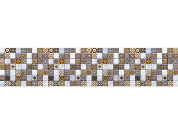 Стеновая панель SP-(3)10 привнесет в интерьер кухни неповторимый колорит и защитит стены от влаги и загрязнений. Гладкая поверхность с ярким мозаичным узором долгое время сохраняет неизменный вид. Панель легко монтируется, не крошится при разрезании, поэтому может использоваться для оформления угловых гарнитуров.<br>