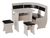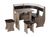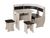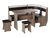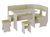 В комплекты входят (ВхШхГ): <br> Большая или малая скамья: 800 х 1600 / 1100 х 1100 мм.<br> Большой или малый стол: 760 х 1100 / 800 х 600 мм.<br> Табуреты, 2 шт: 430 х 330 х 330 мм.<br>