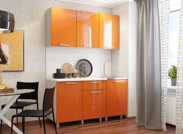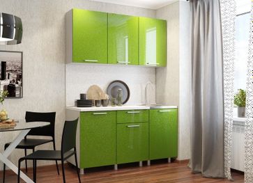 Яркий кухонный гарнитур Блестки идеально подойдет для небольшого помещения. Общая ширина модулей составляет 1500 мм, но по желанию шкаф с мойкой можно расположить отдельно, поставив между ним и другими столами, например, плиту.<br>