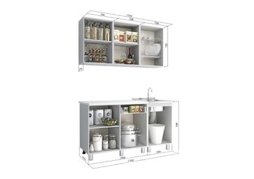 В состав гарнитура входят:<br> навесные шкафы, 3 шт. (ВхШхГ): 720 х 500 х 304 мм;<br> стол под мойку (ВхШхГ): 846 х 500 х 595 мм;<br> разделочный стол (ВхШхГ): 846 х 500 х 595 мм;<br> разделочный стол с ящиком (ВхШхГ): 846 х 500 х 595 мм;<br> <br> Столешница входит в комплект (ШхГ): 1000 х 600 мм.<br>