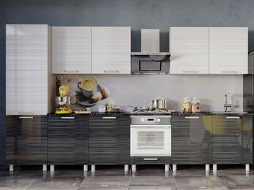 Кухонный гарнитур Титан 360 см совмещает в себе функциональность и стиль. Сочетание контрастных черного и белого оттенков с серебристым декором создает органичное изящество. Оригинальный дизайн выгодно преображает интерьер кухни, погружая в атмосферу уюта и элегантности.<br>