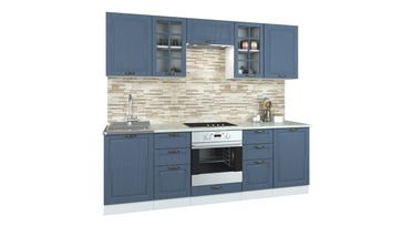 Состав комплекта (ВхШхГ): <br> Малый навесной шкаф: 350 х 600 х 300 мм.<br> Навесной шкаф со стеклянной дверкой (2 шт.): 700 х 400 х 300 мм.<br> Навесной шкаф (2 шт.): 700 х 500 х 300 мм.<br> Напольный шкаф: 830 х 500 х 440 мм.<br> Напольный шкаф для встраиваемой техники: 830 х 600 х 544 мм.<br> Напольный шкаф с тремя ящиками (2 шт.): 830 х 400 х 440 мм.<br> Напольный шкаф под мойку: 830 х 500 х 440 мм.<br> <br>