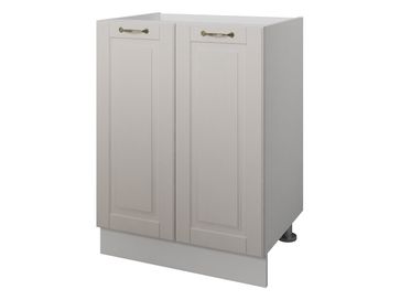 Кухонный модуль Палермо Тумба 600 под мойку БЕЗ СТОЛЕШНИЦЫ под мойку является неотъемлемой частью любой кухни. Он входит в одноименную серию, что позволяет создать свой собственный кухонный гарнитур.<br> Преимущества:<br> модульная серия — большое количество разноплановых элементов, с помощью которых вы создадите кухню, подходящего размера и функционала;<br> классический дизайн — подойдет под большинство интерьеров.<br> <br> Корпус выполнен из ЛДСП толщиной 16 мм. Для изготовления фасада используется МДФ с пленкой ПВХ. Ручки выполнены из бронзы.<br> Обратите внимание! Тумба поставляется без столешницы и в разобранном виде. Мойка, соединительные и торцевые планки в комплект не входят, их необходимо приобретать дополнительно. None Страна производства: Россия