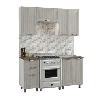 Кухонный гарнитур Прованс 160 см для небольшой кухни.<br> Корпуса комплекта изготовлены из ЛДСП толщиной 16 мм, а фасады выполнены из МДФ и покрыты пленкой ПВХ. Дверцы крепятся на накладные петли, а выдвижные ящики оснащены шариковыми направляющими полного выдвижения.<br> В комплект входят: <br> Стол под мойку двухдверный (ВхШхГ): 830 х 600 х 440 мм;<br> Стол с тремя ящиками(ВхШхГ): 830 х 400 х 440 мм;<br> Шкаф двухдверный навесной (ВхШхГ): 700 х 600 х 300 мм;<br> Шкаф однодверный навесной (ВхШхГ): 700 х 400 х 300 мм;<br> Шкаф антресольный навесной (ВхШхГ): 350 х 600 х 300 мм;<br> Декоративные хромированные опоры для установки без цоколя;<br> Антресольный шкаф оснащен одним газовым кронштейном.<br>