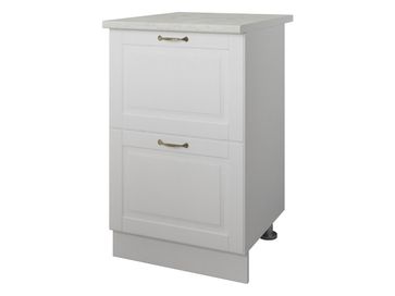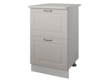 Кухонный модуль Стол 2 ящика 50 см Палермо — удобный и практичный элемент. Он оснащен двумя высокими выдвижными ящиками, которые отлично подойдут под хранение посуды. А на столешнице можно разместить небольшую технику, например, поставить чайник или использовать ее в качестве разделочного стола.<br>