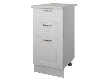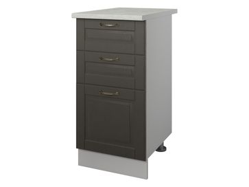 Кухонный модуль Стол 3 ящика 40 см Палермо входит в одноименную серию модульных кухонных гарнитуров. Он оснащен тремя выдвижными ящиками: один большой и два маленьких. Отлично подойдет для хранения столовых приборов, мелких предметов и посуды.<br> Преимущества:<br> модульная серия — в коллекции есть большой выбор шкафов и тумб, благодаря которым можно создать кухню нужного размера и функционала;<br> столешница в комплекте — удобно и практично, не нужно докупать.<br>