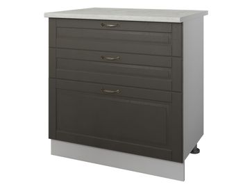 Кухонный модуль Стол 3 ящика 80 см Палермо подойдет в качестве удобного разделочного стола. На нем также можно разместить микроволновку или любую другую технику. А три выдвижных ящика помогут удобно организовать пространство. Преимущества:<br> модульная серия — в коллекции есть большой выбор шкафов и тумб, благодаря которым можно создать кухню нужного размера и функционала;<br> столешница в комплекте — удобно и практично, не нужно докупать.<br>