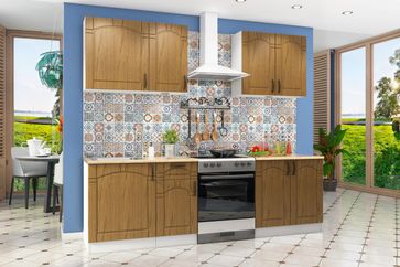 Обратите внимание, что плинтус, фартук, мойка и сушка для посуды в комплект не входят, их необходимо приобрести отдельно. Для данной кухни подойдет круглая врезная мойка диаметром 490 мм. None Страна производства: Россия