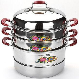 Мантоварка 5 пр МВ (x2). Материал: нержавеющая сталь. Диаметр: 30 см (10,5 л). Крышка: сталь, стекло. Ручки: бакелит. Размер упаковки: 34,5 х 34,5 х 31,5 см. Вес: 4,2 кг. Страна производитель: Китай. 3-х ярусная мантоварка MAYER& BOCH выполнена из высококачественной нержавеющей стали с глянцевой полировкой, украшенной цветочным рисунком. Мантоварка - это специальная многоуровневая кастрюля с помощью которой можно готовить блюда на пару. Через отверстия в днищах ярусов происходит доступ пара от кипящей воды к приготовляемым продуктам. Идеально подходит для блюд национальной кухни: мант, поз, паровых пельменей и т.п. Кроме этого, на пару можно готовить множество других полезных диетических блюд. Мантоварка оснащена удобными бакелитовыми ручками и стеклянной крышкой, через которую можно наблюдать за процессом готовки. Подходит для всех типов плит. Подходит для мытья в посудомоечной машине. None