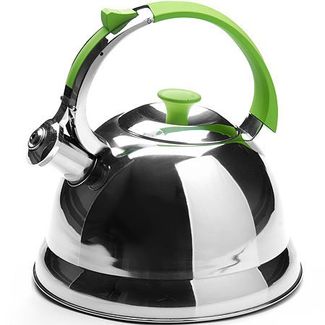 Чайник из нержавеющей стали со свистком. Цвет: серебристый,салатовый. Материал: нержавеющая сталь CrNi 18/10. Дно: капсулированное/индукционное. Ручка: нержавеющая сталь, бакелит. Цвет ручки: салатовый. Объем: 2700 мл. Вес: 1260 г. Размер упаковки: 22,5 х 22,5 х 22,5 см. МВ (х12). Страна производитель: Китай. Чайник MAYER& BOCH изготовлен из высококачественной нержавеющей стали (CrNi 18/10). Изделия из нержавеющей стали не окисляются и не впитывают запахи, благодаря чему вы всегда получите натуральный, насыщенный вкус и аромат напитков. Капсулированное дно с прослойкой из алюминия обеспечивает наилучшее распределение тепла. Удобная фиксированная ручка выполнена из нержавеющей стали и бакелита, также на ручке расположена клавиша механизма открывания носика. Носик чайника оснащен насадкой-свистком, который позволяет контролировать процесс кипячения или подогрева воды. Поверхность чайника гладкая, что облегчает уход за ним. Эстетичный и функциональный, с современным дизайном, чайник будет оригинально смотреться на любой кухне. Подходит для использования на всех типах плит, включая индукционные. Подходит для мытья в посудомоечной машине. None