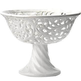 Конфетница на ножке (х6). Форма: круглая. Материал: доломит. Цвет: белый. Декор: ажурный узор. Диаметр: 18 см. Высота: 14 см. Размер упаковки: 22,5 х 19 х 19,5 см. Упаковка: коробка. Вес: 579 г. Страна производитель: Китай. Конфетница на ножке LORAINE выполнена из белого доломита и украшена оригинальным резным ажурным узором в Восточном стиле. Стильная форма и интересное исполнение идеально впишутся в любой кухонный интерьер, а классический белый цвет и изящный дизайн украсит праздничную сервировку стола к любому торжеству. Конфетница предназначена для сервировки конфет, зефира, печенья, а также других сладостей. Такая конфетница также станет замечательным подарком к празднику. Подходит для мытья в посудомоечной машине. None