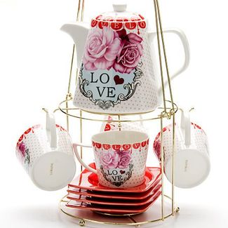 Чайный набор 9 пр LR (х6) Материал: керамика. Цвет: красный. Рисунок: розы, надпись «LOVE». Подставка: металл. Объем чашки: 200 мл. Объем чайника: 1,1 л. Размер упаковки: 19,5 х 18,7 х 30 см. Упаковка: коробка. Вес: 2,65 кг. Страна производитель: Китай. Чайный набор LORAINE состоит из 4 чашек, 4 блюдец квадратной формы и заварочного чайника. Предметы набора изготовлены из качественной керамики, чашки и чайник оформлены ярким изображением роз и надписью LOVE". Все предметы располагаются на удобной металлической подставке с ручкой. Элегантный дизайн набора придется по вкусу и ценителям классики, и тем, кто предпочитает современность. Он настроит на позитивный лад и подарит хорошее настроение с самого утра. Чайный набор идеально подойдет для сервировки стола и станет отличным подарком к любому празднику. " None