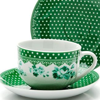 Чайный набор 12 пр МВ (х6). Чашка (6 шт)+блюдце (6 шт). Материал: фарфор. Цвет блюдец: зеленый в горошек. Рисунок на чашках: цветы. Чашка: D 8,5 х 6,5 см/ 220 мл. Блюдце: D 14,5 см. Размер упаковки: 42 х 19 х 7 см. Упаковка: коробка. Вес: 2,45 кг. Страна производитель: Китай.Чайный набор LORAINE на 6 персон изготовлен из высококачественного фарфора. Чашки украшены по верху широкой цветной в белый горошек каймой, стенки чашек декорированы цветочным рисунком. Блюдца имеют цветную в белый горошек поверхность. Удобный, с классическим дизайном, чайный набор не только украсит сервировку стола, но и поднимет настроение и превратит процесс чаепития в одно удовольствие. Набор состоит из 6-ти чашек и 6-ти блюдец, упакованных в подарочную коробку. Изделия легко и просто мыть. Чайный набор прекрасно подойдет в качестве подарка для родных и друзей! None