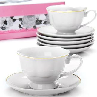 Чайный сервиз 12 пр LR (х6). Материал: фарфор. Цвет: белый. Чашка: D 9,5 х 7 см. Объем чашки: 180 мл. Блюдце: D14 см. Размер упаковки: 41 х 26,5 х 10 см. Вес: 2,45 кг. Упаковка: подарочная коробка. Страна производитель: Китай.Чайный сервиз LORAINE на 6 персон изготовлен из качественного фарфора и оформлен золотой каймой. Элегантный и удобный чайный сервиз не только украсит сервировку стола, но и поднимет настроение и превратит процесс чаепития в одно удовольствие. Сервиз состоит из 12 предметов: 6-ти чашек и 6-ти блюдец, упакованных в подарочную коробку. Чашки имеют удобную, изящную ручку. Изделия легко и просто мыть. Чайный сервиз прекрасно подойдет в качестве подарка для родных и друзей на любой праздник! None