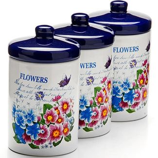 Набор: 3 банки с крышкой 6 пр LR (х12). Материал: доломит. Цвет: белый, синий, розовый. Рисунок: сирень. Объем банки: 400 мл х3. Размер упаковки: 27,2 х 9 х 14,5 см. Упаковка: коробка. Вес: 1,22 кг. Страна производитель: Китай.Набор из 3-х банок для сыпучих продуктов изготовлен из высококачественной глазурованной доломитовой керамики, оформленной ярким цветочным рисунком. Керамика - это экологически чистый материал, который не наносит вред вашему здоровью. Кроме того, этот материал защищает продукты и пищу от образования вредных бактерий. Крышки плотно закрываются, дольше сохраняя свежесть продуктов. Набор имеет привлекательный внешний вид, он прочный и универсальный. Посуда гармонично впишется в любой интерьер, дополняя его и делая максимально комфортным. Изделия отличаются особым очарованием и неповторимым стилем. None