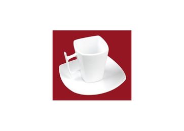 Белоснежная чайная пара. Выполнена в элегантном дизайне. Чайная пара этой модели по-настоящему прекрасна: блестящая глазурь, изысканная форма, классический белый цвет, оригинальная ручка чашки, необычное блюдце – это те признаки, которые делают чайную пару серии "Chan Wave", Quadro незаменимой при сервировке праздничного стола. None