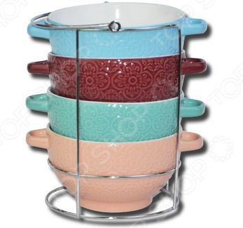 Кухня это не только пространство для приготовления пищи, но и место для кулинарного творчества и вдохновения. Поэтому для каждой хозяйки важно создать внутри этой комнаты максимально удобные и комфортные условия оснастить ее современной техникой, позаботиться о посуде и полезных кухонных приборах. Набор бульонниц Kelli KL-390 выполнен из высококачественной керамики и декорирован интересным узором. Для удобного использования у каждой супницы предусмотрены две надежные эргономичные ручки. Набор станет отличным дополнением к уже имеющейся коллекции посуды. Подойдет как для горячих, так и для холодных супов. Особенности и преимущества бульонниц Повышенная прочность материала. Идеально гладкая поверхность. Элегантный и стильный дизайн. Материал медленно нагревается и остывает. Экологичность керамики выше любых других материалов, используемых при создании посуды. Изделия легко чистятся и моются, можно мыть в посудомоечной машине. Набор супниц дополнит интерьер вашей кухни и создаст уютную атмосферу. В комплекте предусмотрены сразу четыре супницы и металлическая подставка с ручкой. Рекомендации Не подвергайте изделия резким перепадам температур. Не используйте абразивные моющие средства во избежание появления царапин на поверхности. Берегите изделия от ударов и падений. None Возможен самовывоз. Есть доставка.