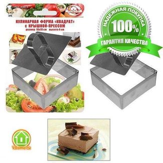 - Кулинарная форма Квадрат - 10х10х4 см с прессом по выгодной цене 324 р. руб.;