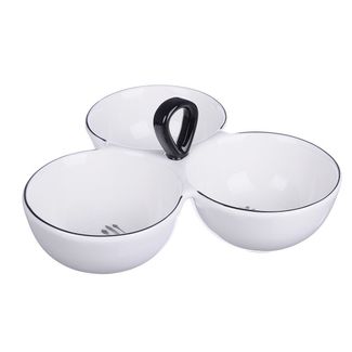 Керамическая менажница — это широкая тарелка с внутренними перегородками, которая используется для красивой презентации блюд. Фарфоровая менажница MILLIMI Кафе де Пари частый гость в ресторанах и на домашних праздничных столах. Благодаря этому функциональному изделию каждый участник трапезы может смешать несколько ингредиентов, заправок и соусов и создать салат по собственному вкусу. None Возможен самовывоз. Есть доставка.