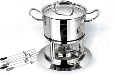Набор для фондю Vitesse Janna идеален для тех, кто любит полакомиться шоколадным или сырным фондю в компании близких или друзей. Этот набор универсальный, то есть в нем можно готовить как шоколадное лакомство, так и сырное. Он состоит из кастрюли объемом 2 л, кольца для вилочек, 6 вилочек, горелки, подставки, крышки. Все составляющие комплекта изготовлены из нержавеющей стали. Удобная подставка-кольцо вставляется в кастрюлю, поэтому, если вам нужно ненадолго прерваться, не возникнет вопроса, куда же положить вилочки. None Возможен самовывоз. Есть доставка.