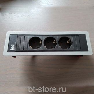 3 розетки 16 А. в рамке серебристого цвета, в комплекте кабель 3 метра GST18i с вилкой, размеры монтажного отверстия 241х83х8 мм., простая и легкая установка, производство Германия, гарантия 12 месяцев. None Возможен самовывоз. Есть доставка.