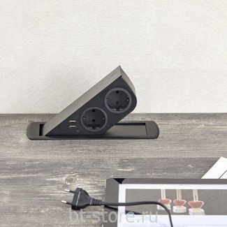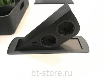 Накладной блок с черным матовым покрытием , c 2 электрическими розетками с заземляющим контактом + 2 USB гнездо для зарядки 2A 5V для подзарядки всех типов USB устройств: мобильные телефоны, mp3-плееры, IPhone, IPad, видео и др. электронные устройства None Возможен самовывоз. Есть доставка.