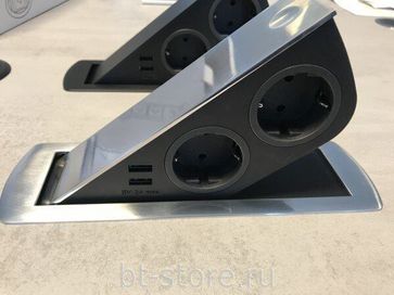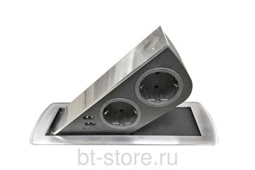 Накладной блок c крышкой алюминий с отделкой под нержавеющую сталь, c 2 электрическими розетками с заземляющим контактом + 2 USB гнездо для зарядки 2A 5V для подзарядки всех типов USB устройств: мобильные телефоны, mp3-плееры, IPhone, IPad, видео и др. электронные устройства None Возможен самовывоз. Есть доставка.