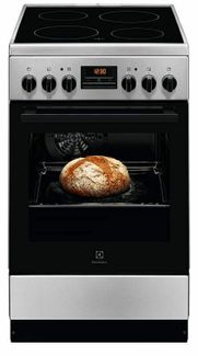 Электрическая плита со стеклокерамикой, 50см шириной, нержавеющая сталь, мультифункциональная электрическая духовка, электрический гриль, электронное управление с отключением духовки, 5 режимов, полезный объём 56 л., штампованные направляющие, эмаль лёгкой очистки, термостат, освещение духовки, 50°C - 250°C 2 эмалированных противня: 1 обычный, 1 глубокий,Размеры (ВхШхГ), мм: 858x500x600. None Возможен самовывоз.