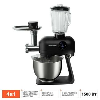 Многофункциональная кухонная машина RKM-4021 – «4 в 1» совмещает в себе возможности 4 самостоятельных устройств: планетарного миксера, блендера, мясорубки и овощерезки. Используя RKM-4021, вы приготовите любимые блюда и освоите новые рецепты, потратив минимум времени и сил на подготовку ингредиентов. Тип управления сенсорный Цвет черный. Максимальная мощность 1500 Вт. Материал корпуса алюминий. Количество скоростей работы 7. Индикация светодиодная. Объем чаши миксера 5 л. Объем кувшина блендера 1,5 л. Съемный блок мясорубки да. Съемный блок овощерезки да. Габаритные размеры 365х320х232 мм. None Возможен самовывоз.