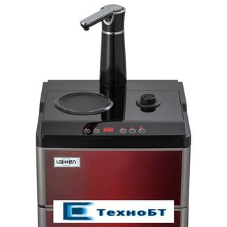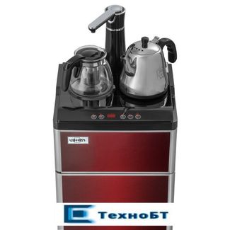 Техническая новинка кулера с нижней загрузкой бутыли - кулер сделанный по схеме "tea bar" ("чайный столик" - тиабар). Подача воды осуществляется через кран, установленный в верхней части аппарата. Кулер оснащен двумя чайниками: для заварки чая и для кипячения воды. Чайник для заварки имеет свое ложе для подогрева и поддержания температуры. В чайнике для кипячения вода начинает нагреваться после двойного нажатия на кнопку нагрева. Нагрев отключается при достижении 100 °С. Встроенный дисплей отображает текущую температуру воды. Если вода в чайнике остыла, можно включить нагрев соответствующей кнопкой. Шкафчик для хранения посуды и продуктов находиться под верхней панелью. Бутыль устанавливается в нижний шкафчик. None Возможен самовывоз. Есть доставка.