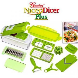 Нарезать кубиками, соломкой, ломтиками, кубиками, разрезать на 4, 8 кусочков или же натереть — все с помощью одного приспособления — простого, практичного и экономящего ваше время! Лезвия Найсер Дайсер Плюс из нержавеющей стали сконструированы таким образом, чтобы фрукты и овощи с кожурой не сминались при нарезании. Вы сможете легко нарезать как помидоры, так и ананас. Вы можете хранить продукты в контейнере. Герметичная крышка плотно закрывает контейнер, и сохраняет ваши продукты свежими надолго.Преимущества: Нержавеющие лезвия Герметичная крышка плотно закрывает контейнер, и сохранит ваши продукты свежими Простой в использовании Быстро нарежет продукты Экономит ваше время и деньги Легко чистится, можно мыть в посудомоечной машине Стильный дизайн Не занимает много места Ножи, разделочная доска, миска для складывания продуктов не всегда под рукой и занимают слишком много пространства на кухне. А Nicer Dicer Plus компактно складывается в один контейнер, несмотря на огромное количество приборов в комплекте! Он удобен как в квартире, так и на даче. Его легко мыть – просто отделите насадки с лезвиями от контейнера и промойте под струей воды, или положите их в посудомоечную машину.Комплектация: Режущий верхний элемент с квадратными шпильками Режущий нижний элемент Прозрачная емкость для хранения (объем 1,500 мл) Крышка на емкость для хранения Режущий вкладыш (маленький и средний) Режущий вкладыш (большой и для нарезания продуктов ломтиками) Режущий вкладыш на четвертинки и клинья Съемная насадка на лезвия прибора Частичная защитная накладка на все режущие вкладыши Насадка-терка (крупная терка) с защитной крышкой Насадка для нарезания продуктов ломтиками с защитной крышкой для лезвия Насадка для фиксации нарезаемых продуктов с устройством, предназначенным для проталкивания пищи Овощечистка Книга рецептовХарактеристики: Материал: пластик Материал ноже