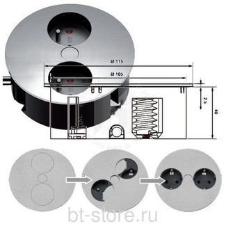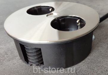 Блок с 2-мя электрическими розетками с заземляющим контактом, крышка-диск из стали с отделкой под нерж. сталь, кабель 2м с вилкой, установочный вырез 105 мм, для столешниц 20-40 мм. None Возможен самовывоз. Есть доставка.