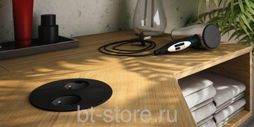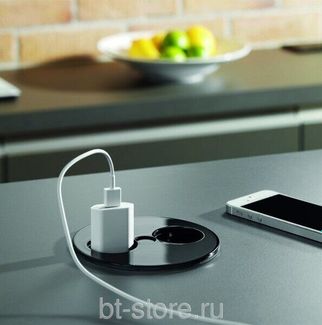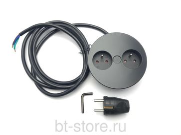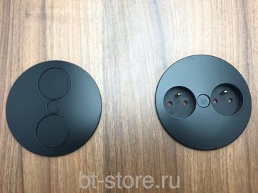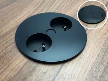 Утапливаемый в столешницу блок с 2 электрическими розетками с заземляющим контактом, крышка-диск из металла в черном матовом цвете, кабель 2 метра с вилкой с заземляющим контактом. None Возможен самовывоз. Есть доставка.