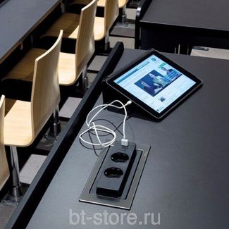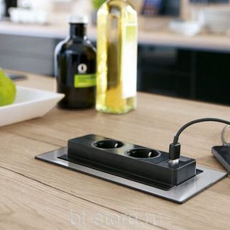 Вращающийся блок розеток 2 x 220В + USB (зарядка). Для установки в столешницы толщиной до 40 мм. Глубина установки: 53 мм. Цвет матовая нержавеющая сталь, в комплекте кабель 3 метра с вилкой. None Возможен самовывоз. Есть доставка.