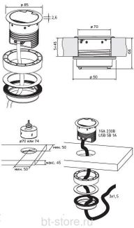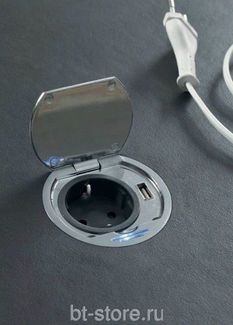 Встраиваемый блок розеток с откидной крышкой, 1 эл. розетка с заземлением 16А 220В и 1 USB зарядка (1 ампер), силовой кабель 1м с вилкой. None Возможен самовывоз. Есть доставка.