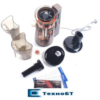 Прочный стальной корпус гарантирует надежность и долговечность прибора. В комплекте также идут 2 резервуара для сбора готового сока и мякоти объемом 1 л. и 0,8 л. Мелкоячеистый фильтр из нержавеющей стали не позволяет продуктам окисляться в процессе работы. Функция Реверс — иногда при переработке очень твердых или волокнистых овощей и фруктов двигатель может внезапно остановиться во время работы. В этом случае, чтобы освободить шнек, используйте функцию реверса. Для этого необходимо перевести переключатель режимов в положение«0», а затем — в положение «R» на несколько секунд. Система защиты: при перегреве или неправильной сборке происходит автоматическое отключение устройства.