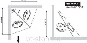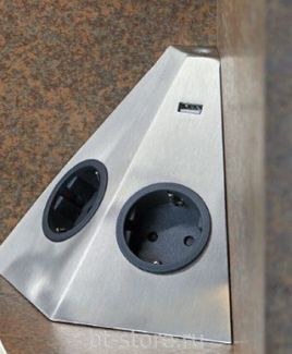 Угловой блок из 2 розеток с заземлением и 1 портом USB для подзарядки гаджетов. Блок розеток может устанавливаться на столешницу в угол стеновой панели на кухне. Производство Франция. None Возможен самовывоз. Есть доставка.