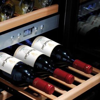 Холодильник для вина CASO WineComfort 24 Компрессорный холодильный агрегат с активной вентиляцией камер Две зоны: нижняя для красного и верхняя для белого вина с индивидуальной установкой температуры Емкость: 24 винные бутылки типа "бордо" (длиной до 310 мм, емкостью 0,75 л) Сенсорная панель управления и цифровой дисплей для каждой зоны Диапазон установки температуры от +5°C до +22°C * Полки для бутылок из массива дерева (могут быть сняты), отключаемое внутреннее освещение Чёрный корпус, стеклянная дверца с рамкой из нержавеющей стали None Страна производства: Китай Возможен самовывоз. Есть доставка.