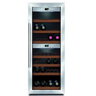 Холодильник для вина CASO WineComfort 38 Компрессорный холодильный агрегат с активной вентиляцией камер Две зоны: нижняя для красного и верхняя для белого вина с индивидуальной установкой температуры Емкость: 38 винных бутылок типа "бордо" (длиной до 310 мм, емкостью 0,75 л) Сенсорная панель управления и цифровой дисплей для каждой зоны Диапазон установки температуры от +5°C до +22°C * Полки для бутылок из массива дерева (могут быть сняты), отключаемое внутреннее освещение Чёрный корпус, стеклянная дверца с рамкой из нержавеющей стали None Возможен самовывоз. Есть доставка.