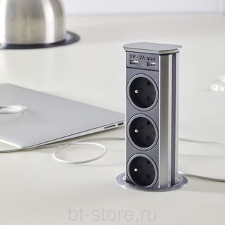 Выдвижной блок электрических розеток с наполнением: 3 розетки 220В и 1 USB зарядка (1 ампер), доступ к розеткам осуществляется выдвижением за крышку, длина силового кабеля -1 метр. None Возможен самовывоз. Есть доставка.
