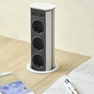 Выдвижной блок электрических розеток с наполнением: 3 розетки 220В и 2 USB зарядки (1 ампер), доступ к розеткам осуществляется выдвижением за крышку, цвет защитной крышки белый. None Возможен самовывоз. Есть доставка.