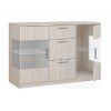 Функциональный и недорогой комод со стеклом для гостиной, спальни или любой другой комнаты. Комод с тремя выдвижными ящиками и двумя распашными комбинированными дверками со стеклом, за распашными дверьми размещены стеклянные полочки. None Есть доставка.