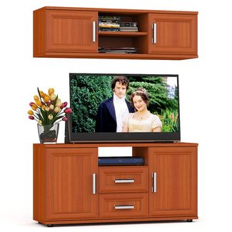 Стенка для гостиной Бонус. Цвет - вишня. Размер стенки (ШхГхВ) 120х36х195 см. Компактная стеночка состоит из тумбы для аппаратуры и полочки, которые отлично добавляют друг друга, составляя гармоничную пару в обстановке комнаты. None Есть доставка.