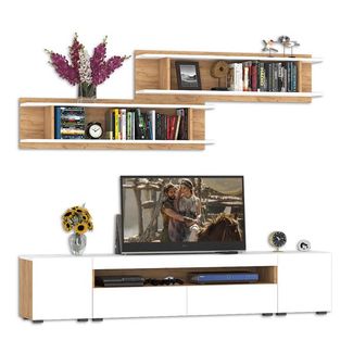 Альба Комплектация № 7. Цвет - дуб крафт золотой/белый премиум. Размер (ШхГхВ) 210х36х192 см. Комплектация - две тумбы, тумба под ТВ и две полки навесные. Использована система открывания от нажатия - Push-to-Open. Роскошная стеночка для гостиной - стильный акцент современного интерьера. Универсальная сборка. None Есть доставка.