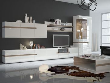 Гостиная Линате — стиль и функциональность в интерьере вашего дома. Множество модулей позволят с комфортом разместить практически любые ваши вещи.<br> В комплект входят (ВхШхГ): <br> Пенал-витрина левый: 1945 х 640 х 420 мм.<br> ТВ-тумба с нишей: 460 х 1640 х 420 мм.<br> ТВ-тумба без ниши: 455 х 1640 х 420 мм.<br> Полка настенная, 2 шт.: 195 х 1500 х 200 мм.<br> Шкаф навесной: 545 х 1640 х 420 мм.<br> <br>