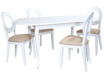 Состав комплекта: <br> обеденный стол (ВхШхГ): 740 х 1100/1420 х 700 мм;<br> стул, 4 шт. (ВхШхГ): 910 х 580 х 450 мм.<br>