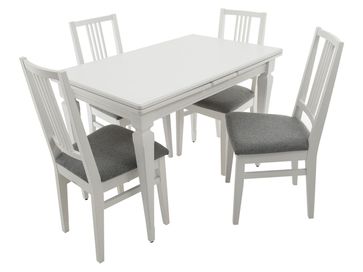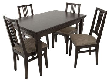 Состав комплекта (ВхШхГ): <br> обеденный стол: 770 х 1100/1200 х 700 мм;<br> стул, 4 шт.: 940 х 460 х 450 мм.<br>