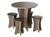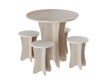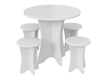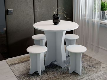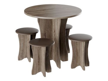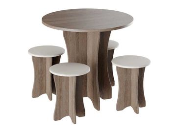 Состав комплекта (ВхШхГ): <br> Стол: 710 х 800 х 800 мм.<br> Табурет, 4 шт.: 394 х 330 х 330 мм.<br>